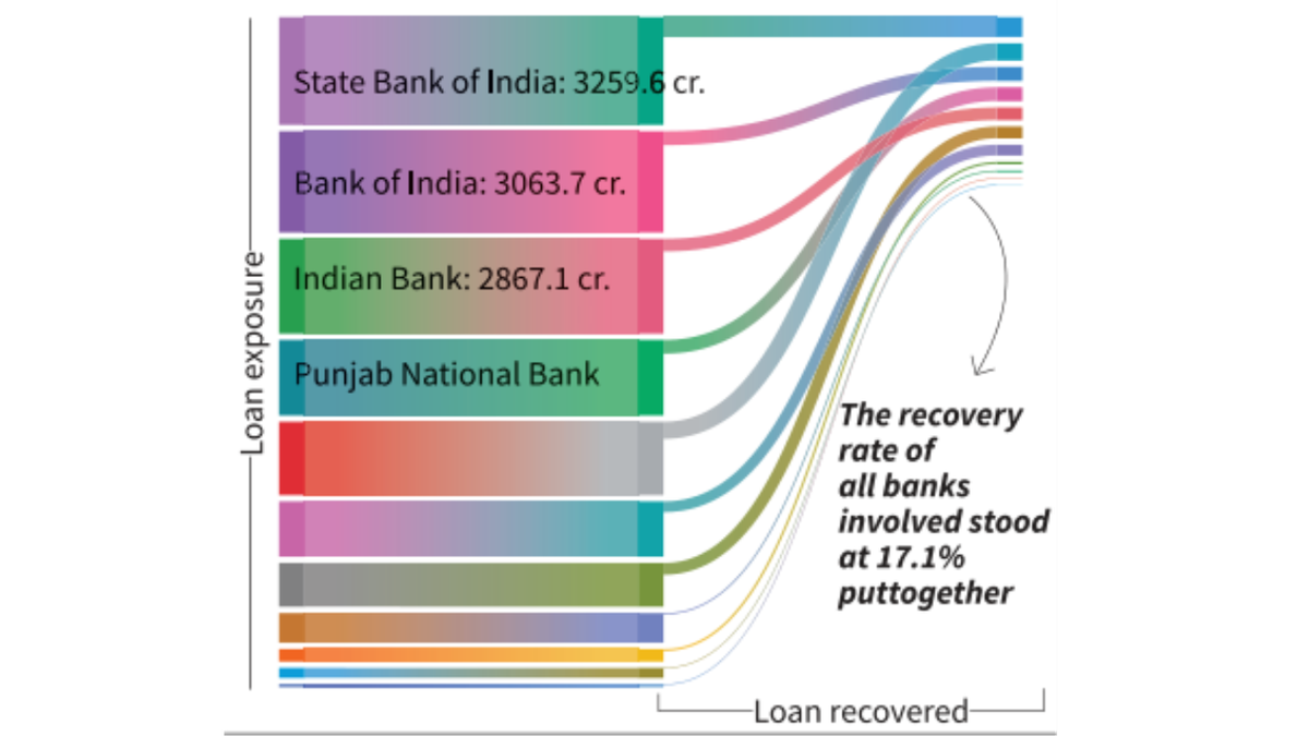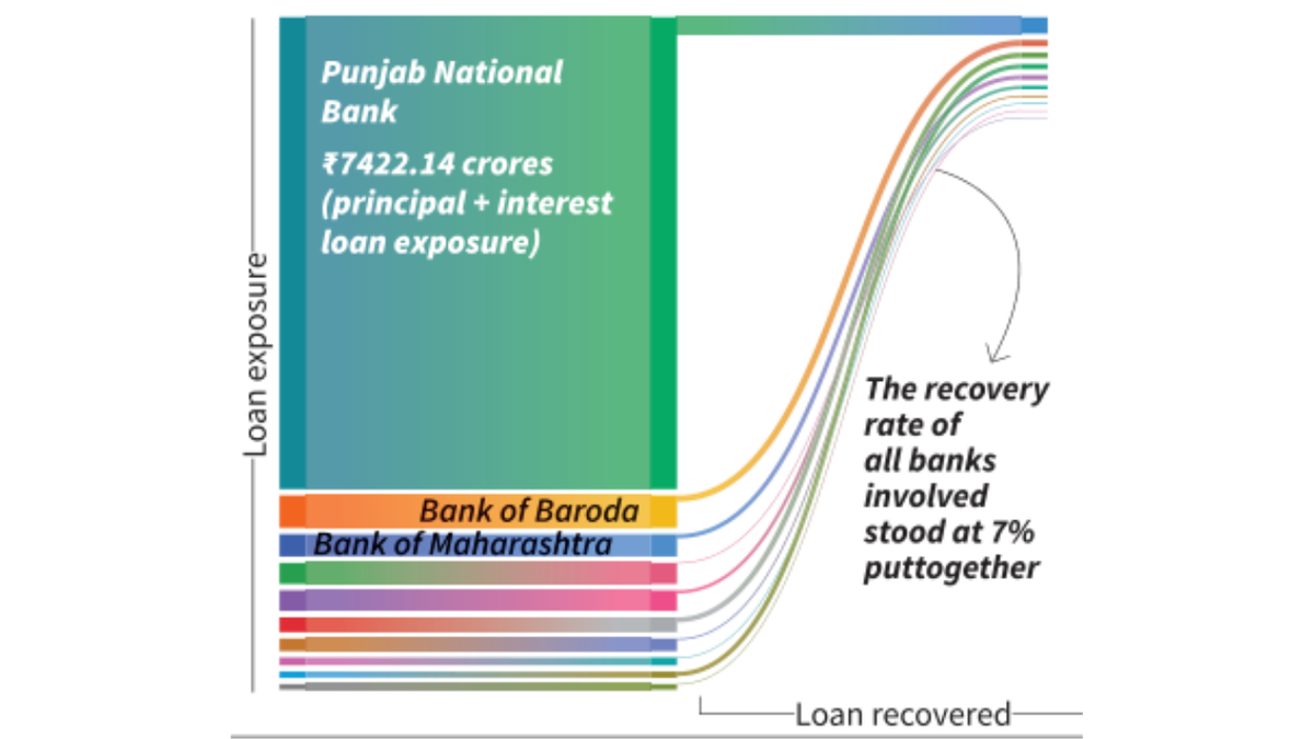 The chart below details loan exposure and the recovered amount in accounts related Nirav Modi