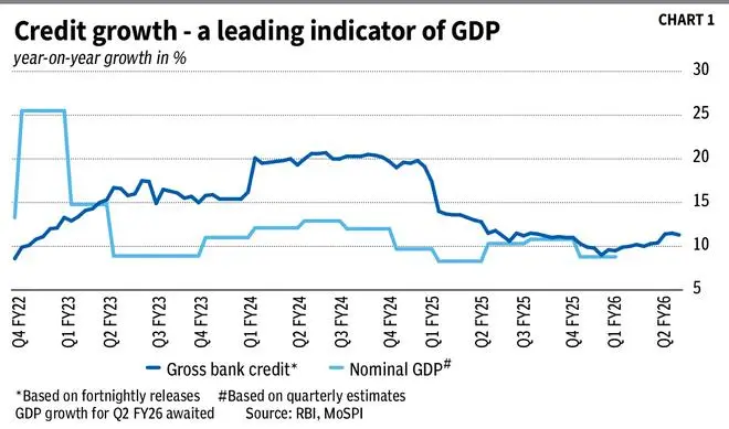 In the current financial year, so far, bank credit has grown 11.3 per cent year on year. However, until fortnight ended August 22, it was 10 per cent. With the rationalisation of GST rates, credit growth accelerated in the succeeding fortnights to 11.3 per cent as of October 31. Given the strong correlation, one can also infer that in these fortnights, GDP growth could’ve got a fillip.