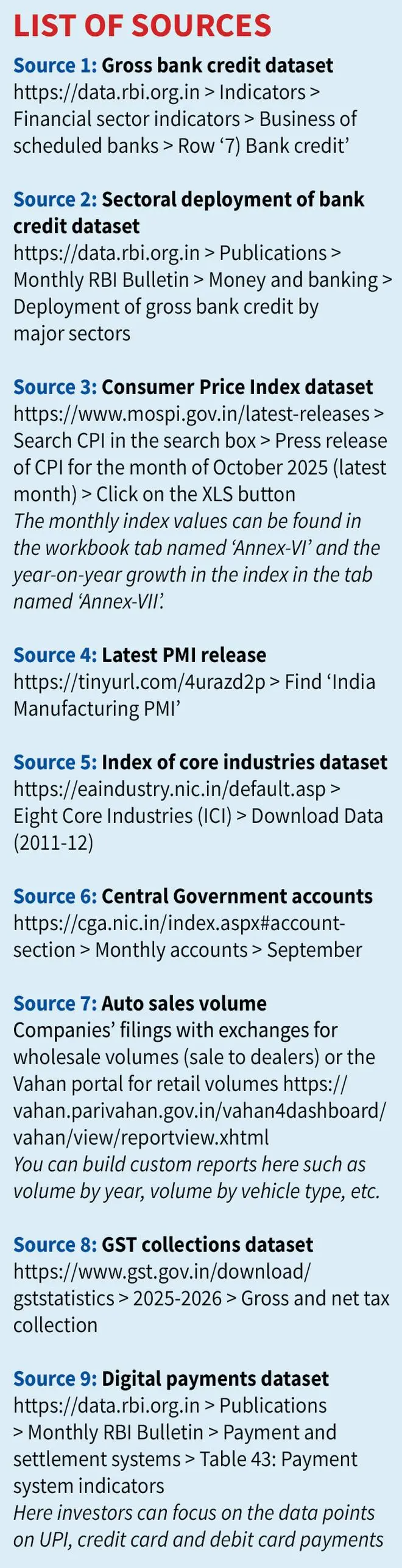 There are three high-frequency indicators which are useful for investors in sectors such as FMCG, consumer durables/ consumer discretionary, digital commerce and so on. They are auto sales volume, GST collections and digital payments. All three are released in monthly intervals and accessible from sources 7 to 9.