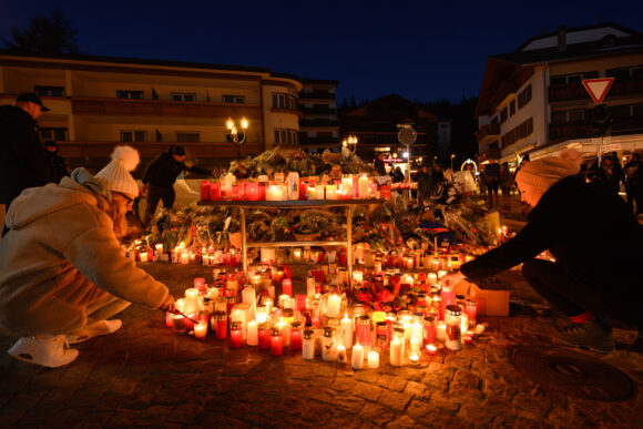 Photograph: Mourners commemorate deaths from fatal resort fire in Crans Montana, Switzerland; photo credit: Harold Cunningham/Getty Images.